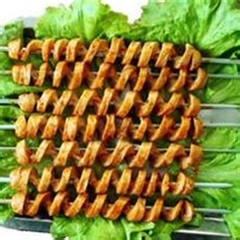 面筋原料( 蛋白质含量高达80%以上)采用优质小麦蛋白粉,经过拌、淹、蒸、煮、烤等工艺处理,烤制过程中刷上孜然、盐巴、酥油,随着火候加大香气渐渐四溢缭绕, 再刷上精心熬制的专用烤面筋辣酱,红油辣子,边烤边刷的过程中会发出吱吱的响声,香味远飘,勾人食欲。